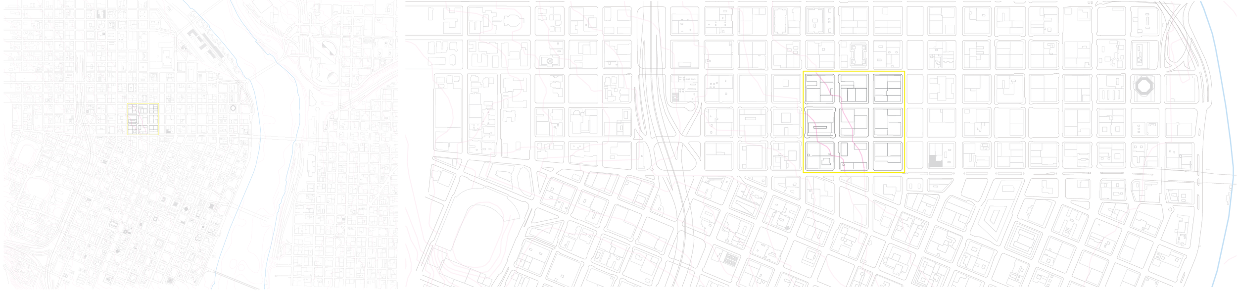The Ramp was the result of a term long study asking "what is urban?" This was explored through a series of exercises, readings, and lectures along with simple observation. I arrived at the conclusion that urban is the chance encounter, the intrigue, and the community. It's the diversity and depth of a varied and dense settlement that draws people to it. The ramp explored these conditions and possibilities through level changes, street front experimentation, public open spaces and the careful arrangement of program along a central spiraling circuit, all containing a top lit climbing wall that winds its way through the building providing glimpses into itself. The image above was the genesis of its form, two strips of paper with a gradient representing privacy curving in on itself and skewing slightly.
